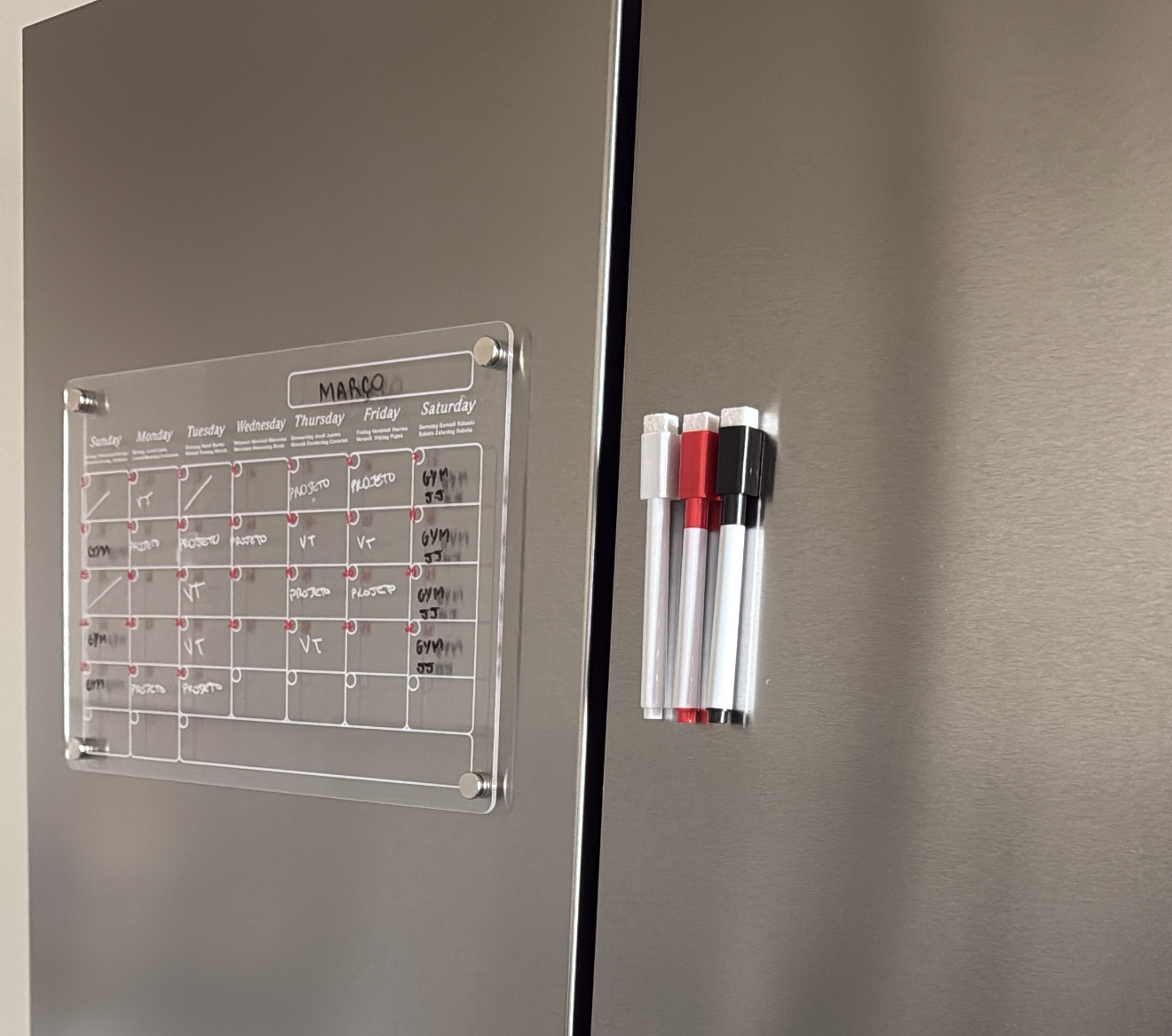 3 marcadores (branco, vermelho e preto) com imã e apagador na tampa;